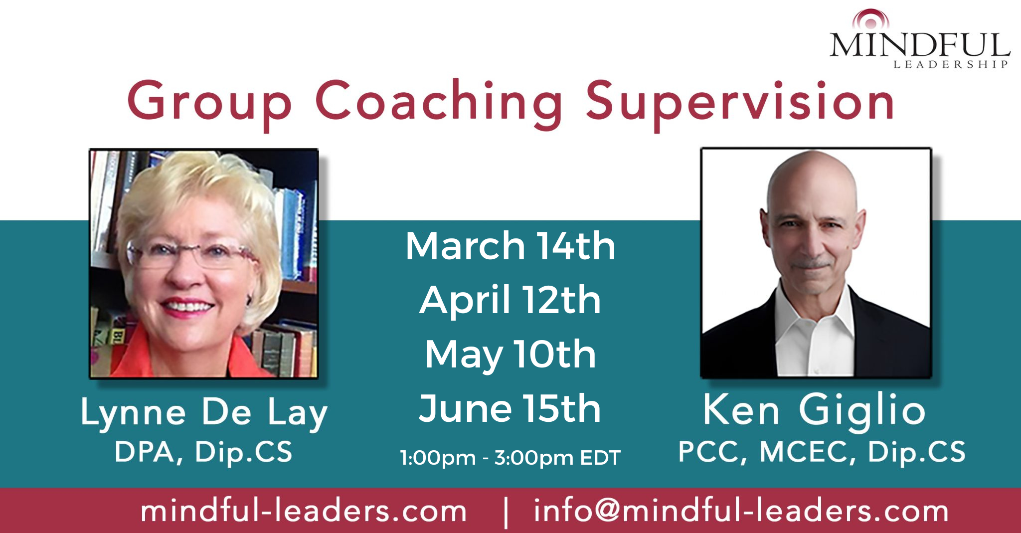 Ken Giglio, Principal of Mindful Leadership Consulting, PCC and certified coach supervisor, and Lynne De Lay, The Coach's Coach, co-lead supervision groups for coaches based on Ken's Tri-Lens Coaching Supervision Model™....
